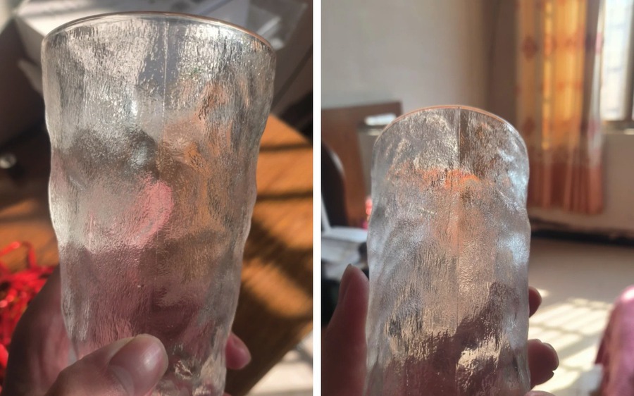 2. Tiếp theo là cốc thủy tinh dày kiểu “búa đập” kém chất lượng