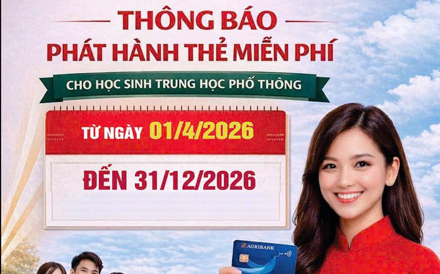 Từ 01/4/2026 đến 31/12/2026, Agribank Chi nhánh Vĩnh Thuận Kiên Giang II miễn phí phát hành thẻ dành riêng cho các em học sinh THPT trên địa bàn các xã Vĩnh Phong, Vĩnh Thuận và Vĩnh Bình, tỉnh An Giang.