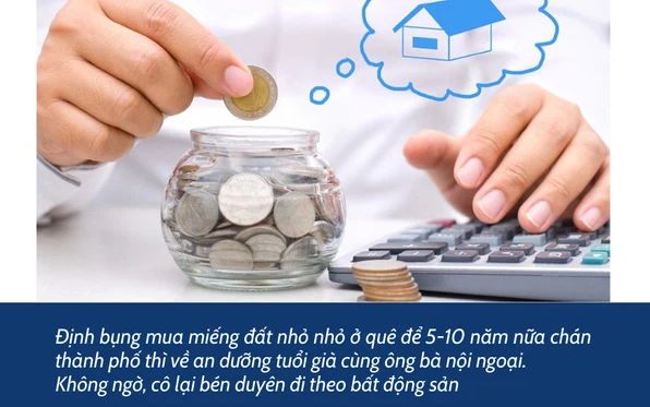"Hồi đó cô định bụng mua miếng đất nhỏ nhỏ ở quê, để 5-10 năm nữa chán thành phố thì hai vợ chồng về an dưỡng tuổi già cùng ông bà nội ngoại. Không ngờ, cô lại bén duyên đi theo bất động sản."