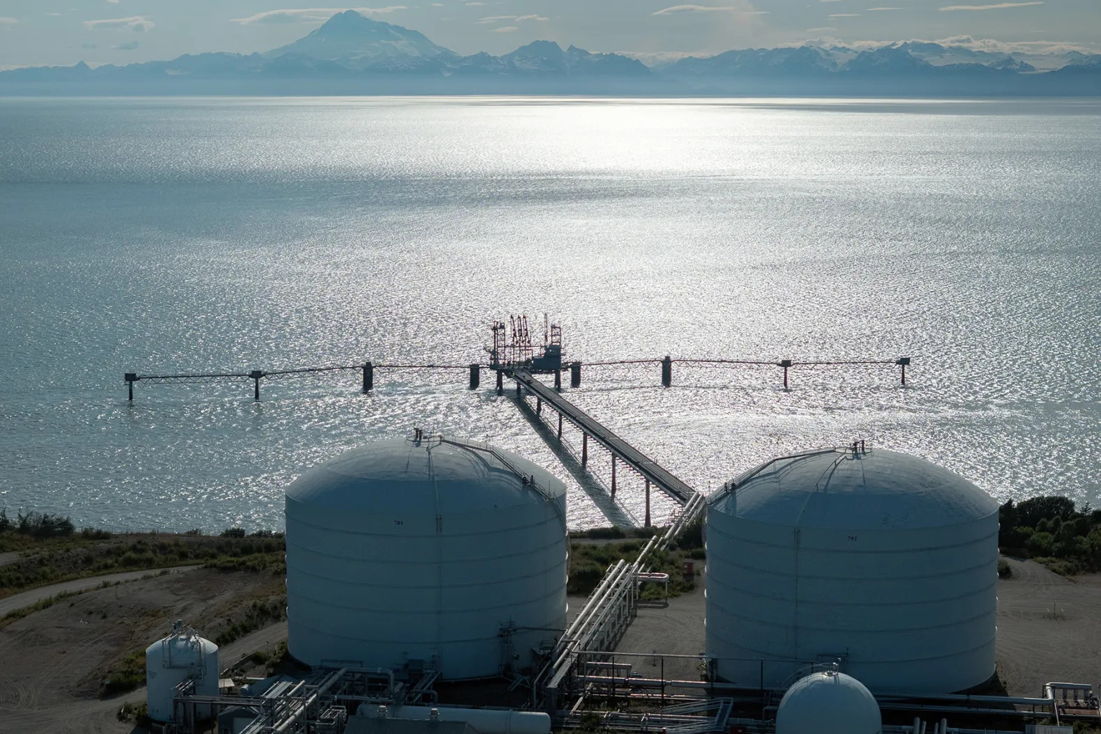 Một cơ sở xuất khẩu khí đốt tự nhiên ở Nikiski, Alaska - địa điểm được đề xuất cho “Dự án LNG Alaska” khổng lồ mới. Ảnh: NATHANIEL WILDER/Thời báo New York/Redux