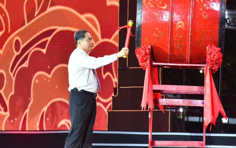 Tại buổi lễ, Chủ tịch Quốc hội Trần Thanh Mẫn đã trang trọng đánh trống khai hội, mở đầu cho Lễ hội Mùa Thu Côn Sơn - Kiếp Bạc năm 2025 trong tiếng trống hào hùng hòa với lời ca tiếng nhạc và ánh sáng rực rỡ.