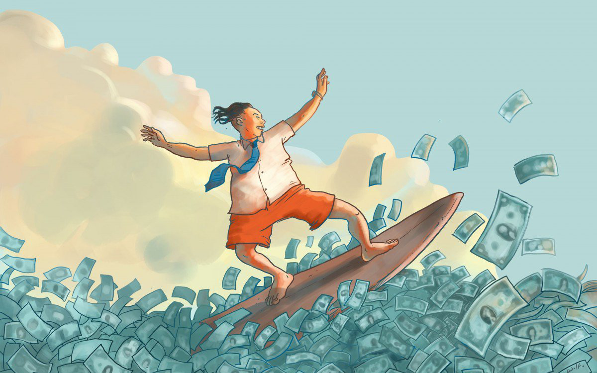 Chứng khoán cũng vậy thôi. Ví dụ có những con sóng do yếu tố vĩ mô tốt, một số ngành được hưởng lợi từ diễn biến đó và tăng là chuyện rất bình thường, không hề có yếu tố tạo lập ở đây. Cổ phiếu tăng vì kết quả kinh doanh của hầu hết doanh nghiệp trong ngành đó tăng. Đó là điều rất bình thường và chúng ta không cần phải có một kỹ thuật quá phức tạp để lướt những 'con sóng' đó, vì nó rất lớn.