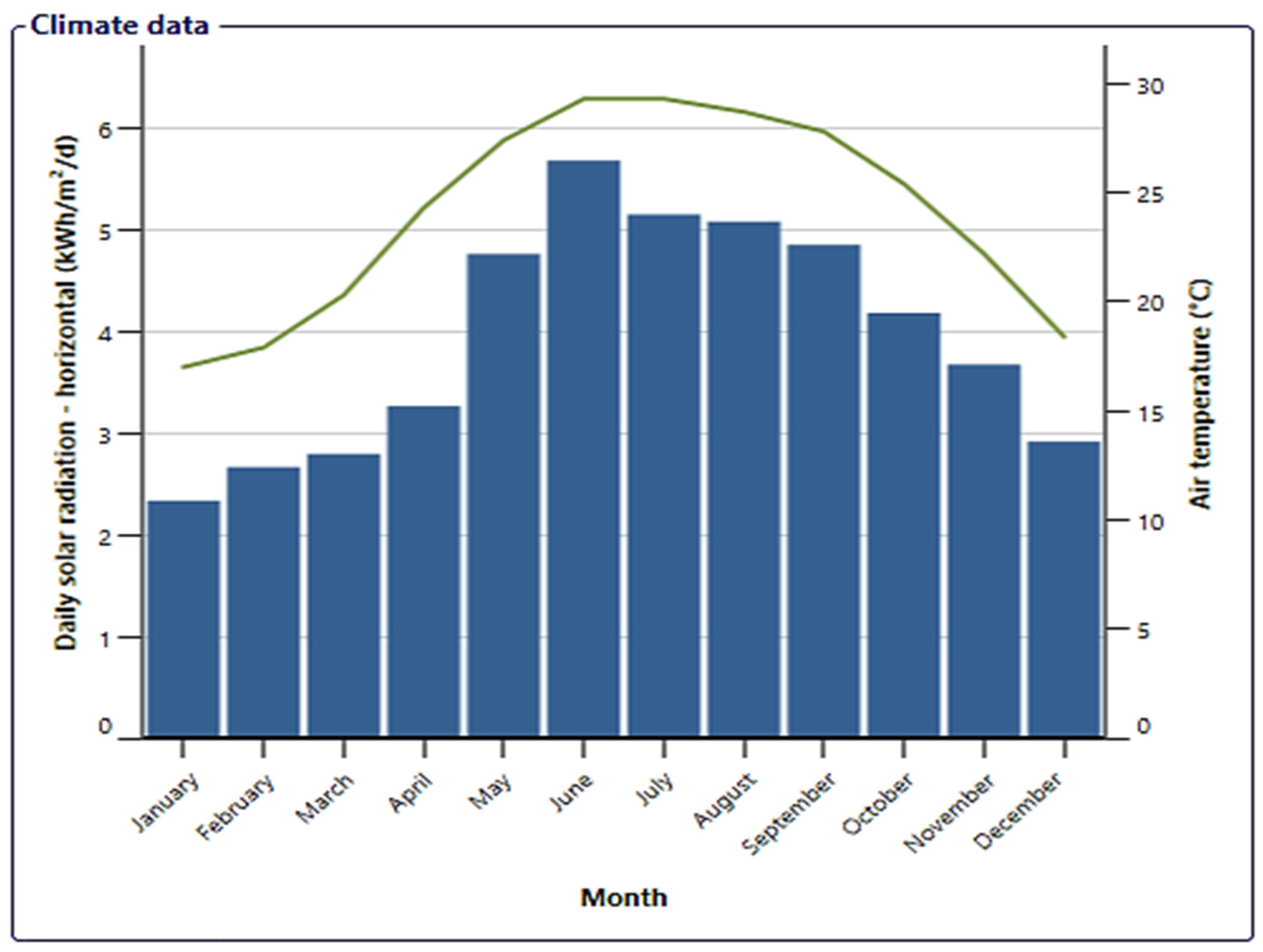 Bức xạ mặt trời hàng ngày tại thành phố Hà Nội. Nguồn: MDPI